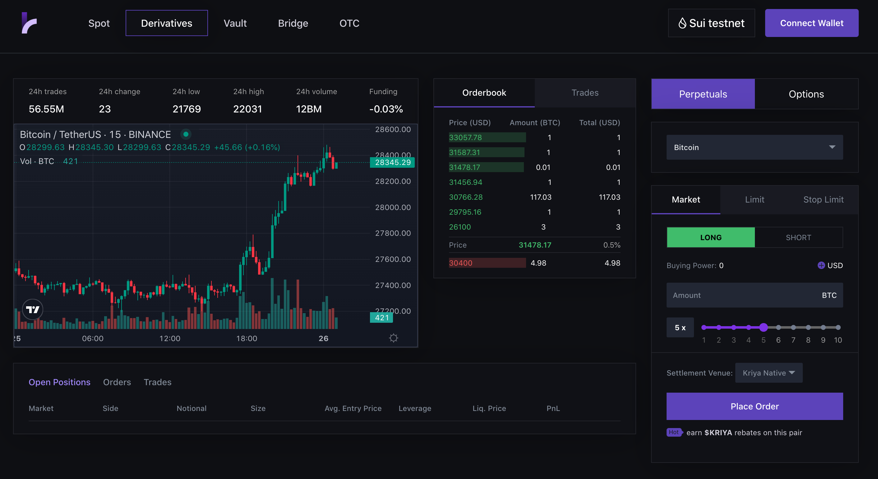 Check out Kriya DEX's lightning fast orderbook [here](https://www.app.kriya.finance/derivatives/trade/perps/0), Make a deposit and start trading today!
