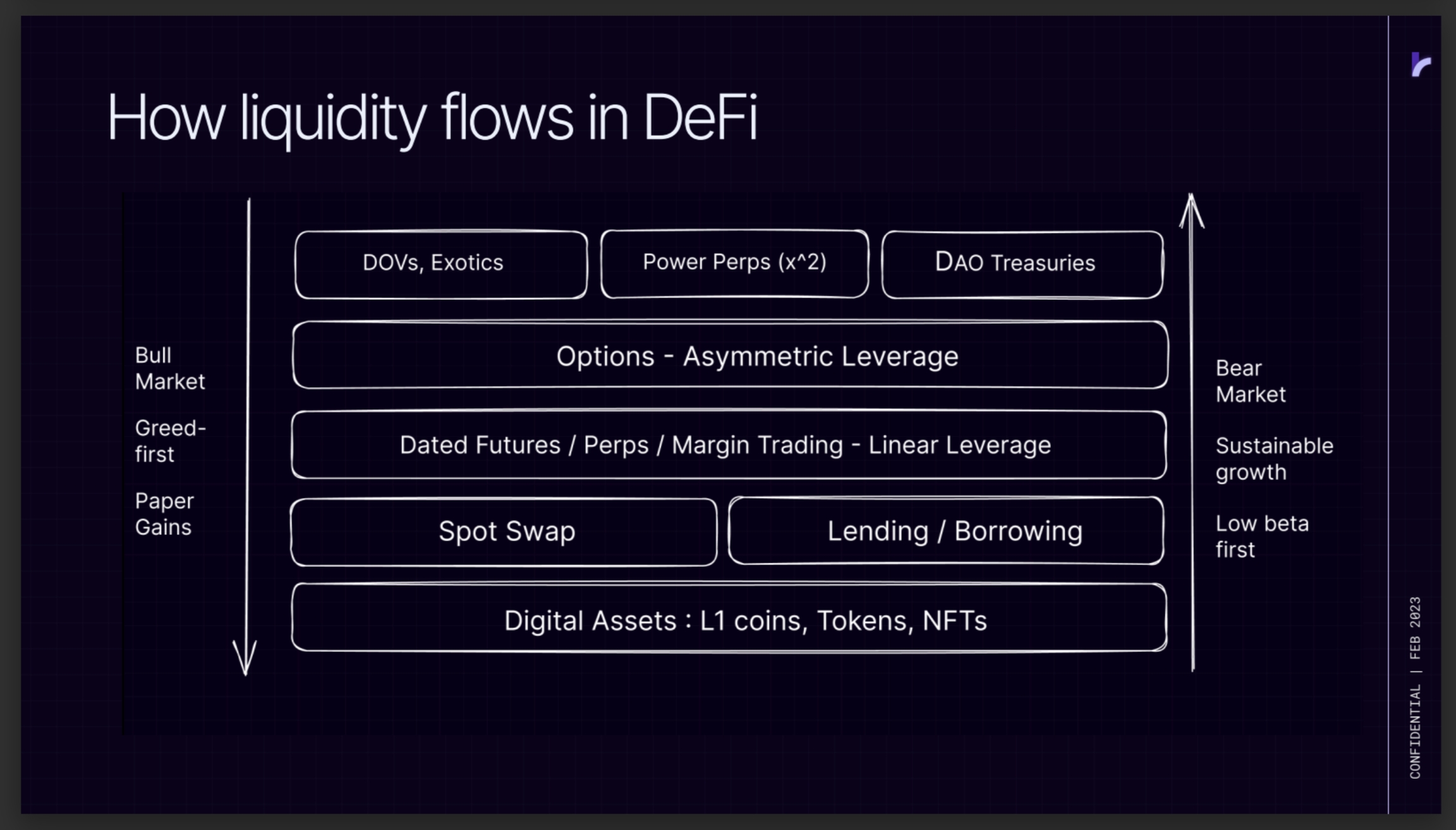 We believe sustainable liquidity is built ground up from low beta, linear products to high beta, asymmetric, under-collateralized derivative products